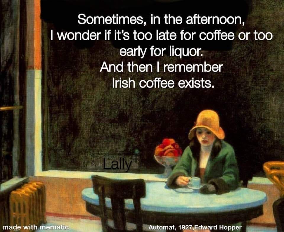 If it's too late for coffee and too early for booze, then you might try coca tea (Dellise is a great brand out of Peru.) Of course, I would never drink it unless de-cocainized, although it sure does make the mouth tingle. 8^)